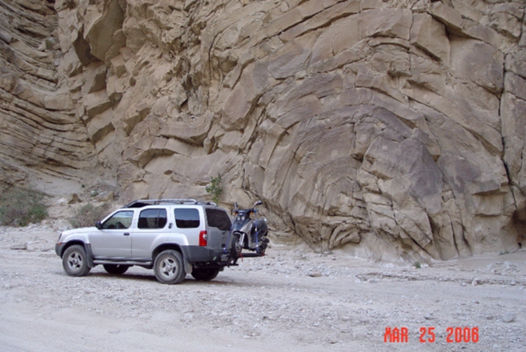 ![]() Anticline - formed during an upheaval when rocks were still molten People come from around the world to see this great expample Located in Fish Creek / Split Mountain ![]() You guessed it -- we are stopping to eat again ![]() Mike is checking out the Anticline up close while the gourmet foodies gorge on peanut butter and jelly sandwiches