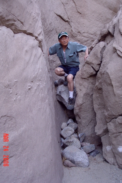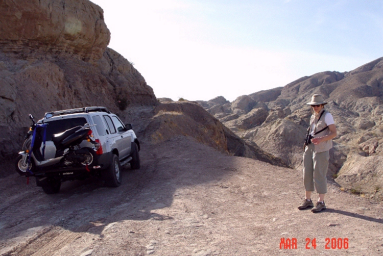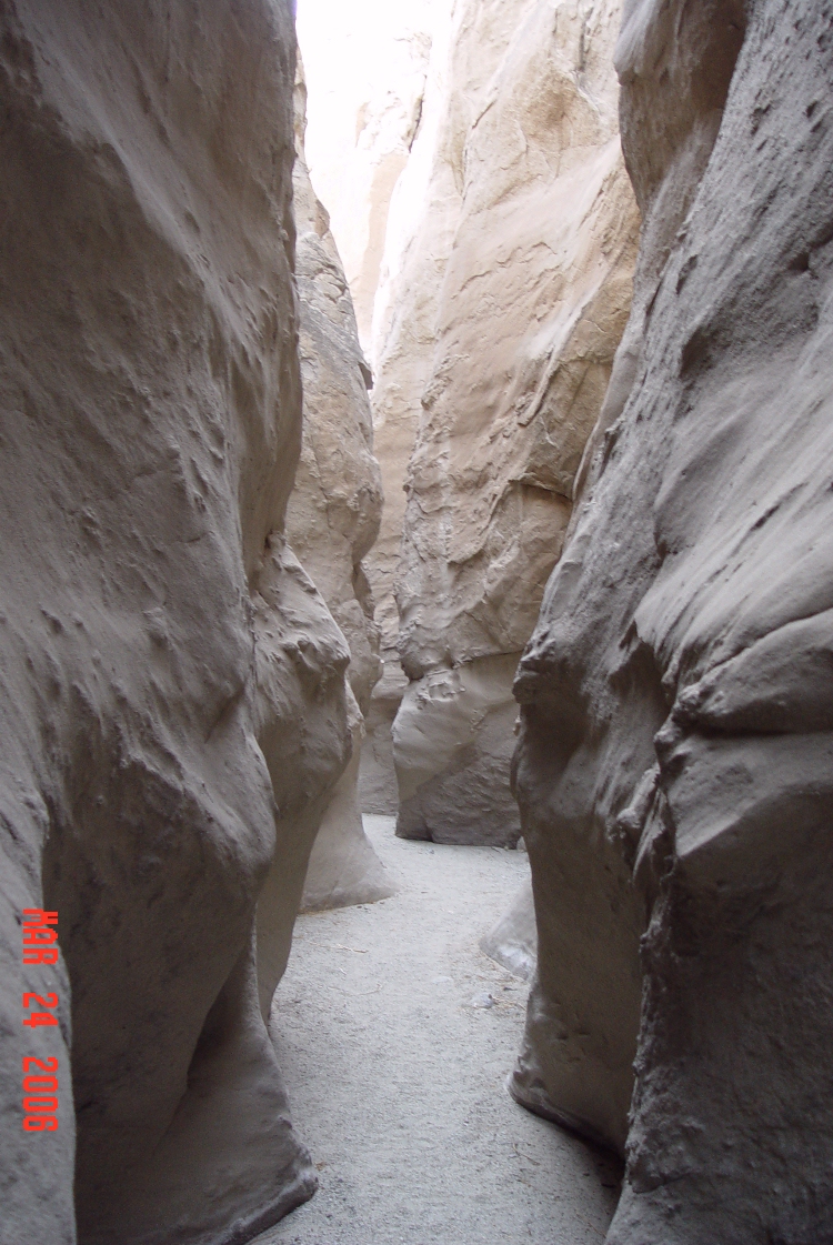 Gallery #7 Anza-Borrego Desert State Park March 25 - 26, 2006 To S. Palm Wash and Slot Canyon in Borrego Badlands ![]() Bad trail to Calcite Mine! OK for a burro but for not us Located east of town, just north of hwy S22, see map ![]() A much better trail in South Palm Wash leads to the slot canyon ![]() Jan has a migraine in the makings ![]() Very peaceful Zen moment ![]() Mother Earth's delight .. Canyon best viewed at max foto size which improves depth perception ![]() I could use a few more rocks ...for my marqarita ![]() Eureka! We found one The End Back to beginning |