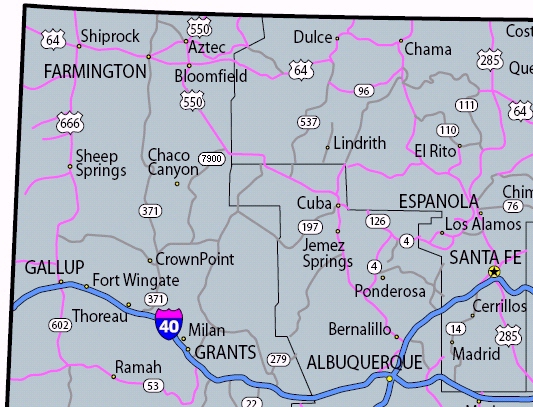 back on Hwy I-40 in New Mexico. This Four Corners map is not a